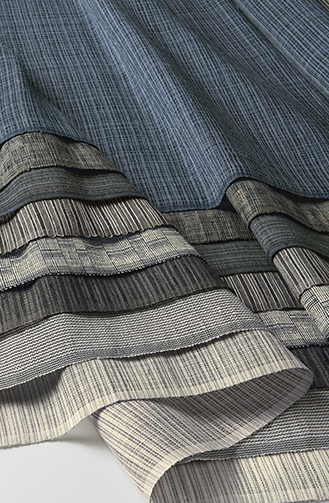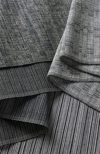 Drawing from a technique of weaving strips of cloth as a weft, our Sakiori shade lends dramatic effect with bold strokes of black that act as a counterpoint to clean forms and quiet neutrals. Mist warp threads.